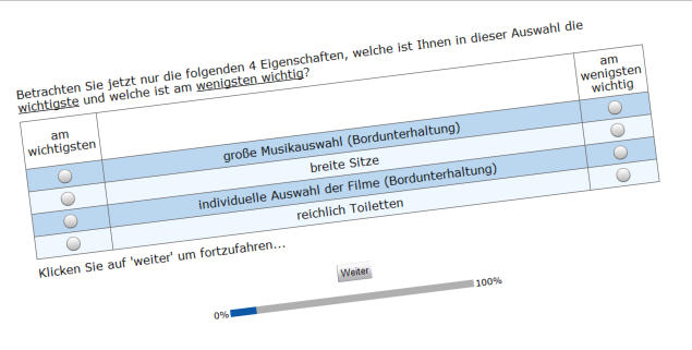 MaxDiff-Studie mit n=154 Teilnehmern. Die ersten Online Ergebnisse sind ist für den Kunden